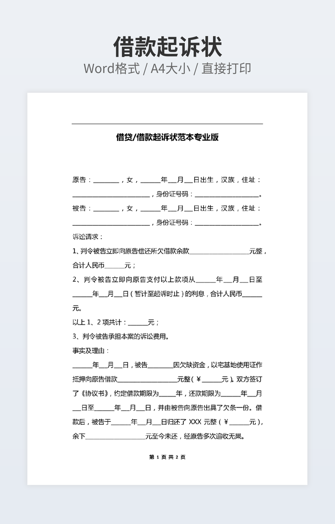 借款起诉状范本专业版