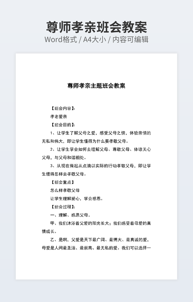 尊师孝亲班会教案