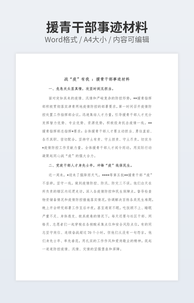 援青干部事迹材料